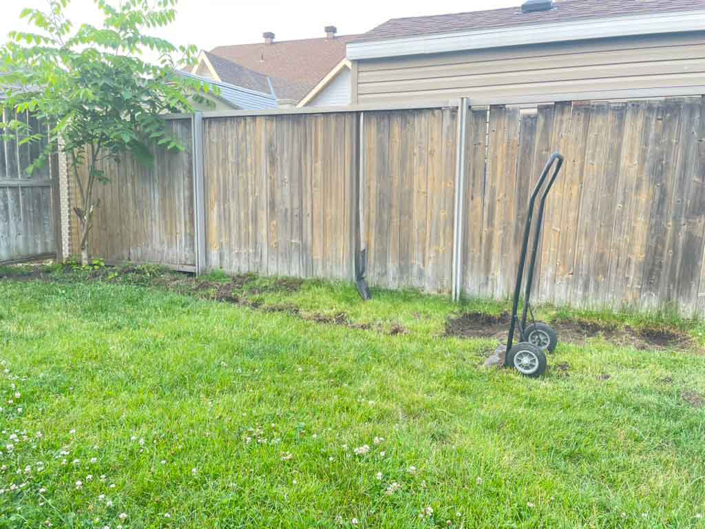 먼저 아래 사진에 보이는것 처럼 펜스 앞쪽으로 가든베드를 만들었습니다.