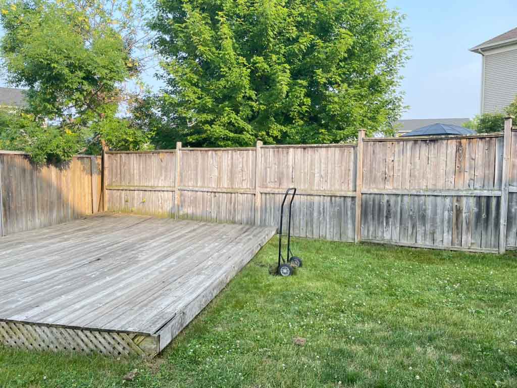 봄이 되고 지금의 집에 이사온지 얼마되지 않았을때 루루의 뒷뜰은 민들레와 토끼풀로 뒤덮여있고, 자세히 보면 진짜 잔디는 거의 없습니다. 이사오기전의 사람들이 만들어놓은 낡은 데크마루가 균형을 잃고 바닥에서 삐꺼덩 소리를 내며 누워있었고, 주변 펜스와 잔디도 전혀 관리가 되지 않아서 이사왔을때의 처음 모습은 낡은 나무바닥과 정글이었습니다. 그나마 남편이 급하게 키큰 잔디를 깍아내고 주변을 정리한 후의 모습이 사진의 모습입니다.